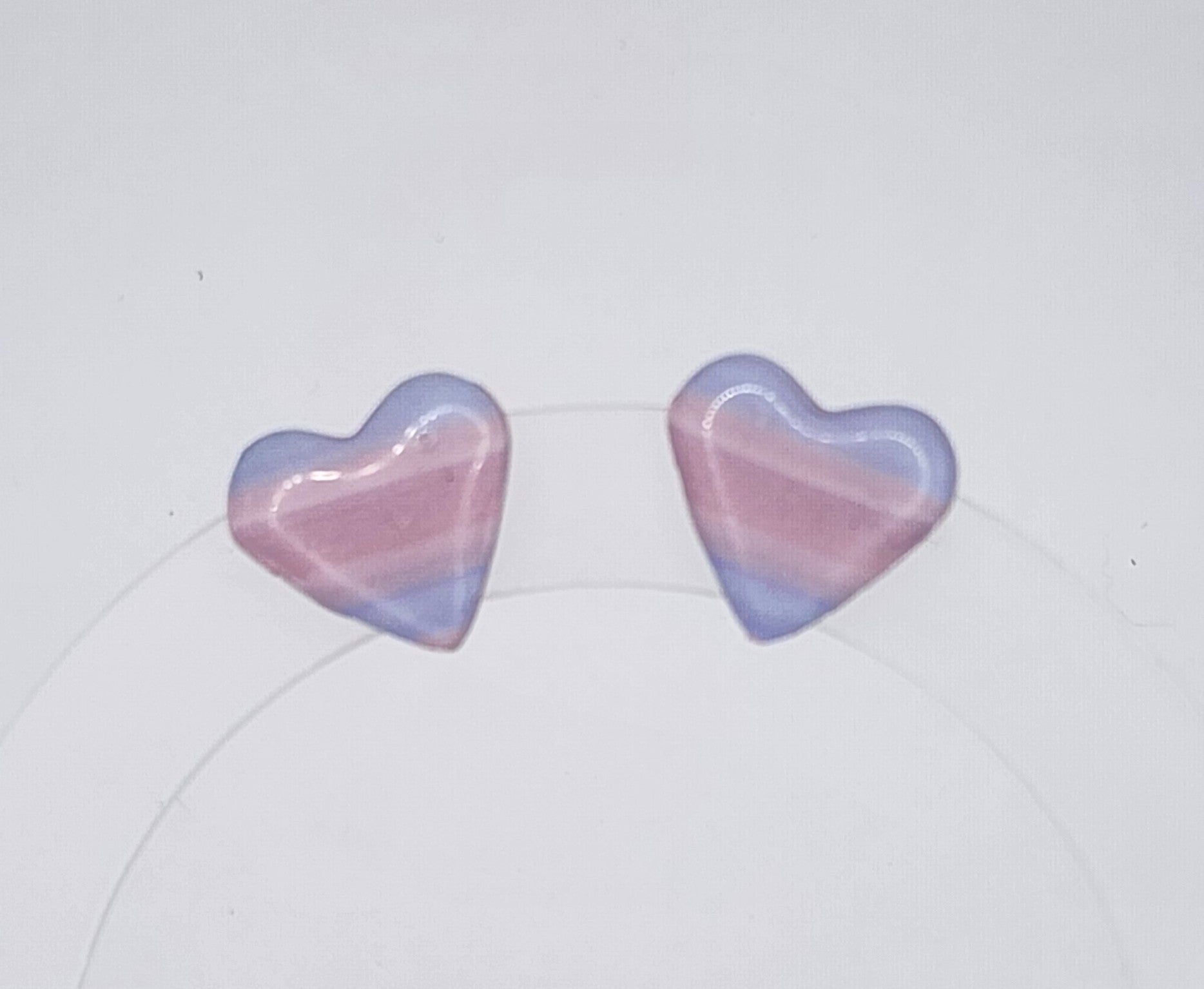 | Sweet, spirited, and full of charm—these glossy heart-shaped earrings feature alternating pastel stripes in pink and sky blue, reminiscent of cotton candy at a summer fair. Their vibrant color palette and smooth resin finish make them a whimsical standout, while silver-tone hooks add a dash of polish. Light enough for everyday wear and bold enough to spark compliments, these earrings are pure joy in accessory form. |